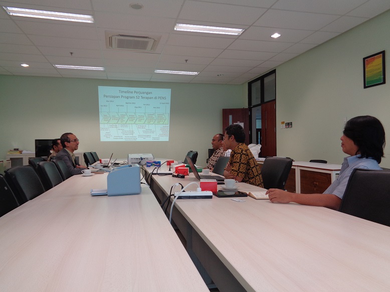 3 Nopember 2016Program Pascasarjana PENS menerima kunjungan dari Politeknik STTT Bandung dan Politeknik Negeri Malang. Kunjungan ini dalam rangka studi banding dan persiapan penyelenggaraan pendidikan Magister Terapan serta berbagi tentang tata kelola dan awal berdirinya Program Magister Terapan PENS. Kunjungan ini diharapkan dapat menjadi upaya untuk meningkatkan kualitas bidang akademik di Politeknik.