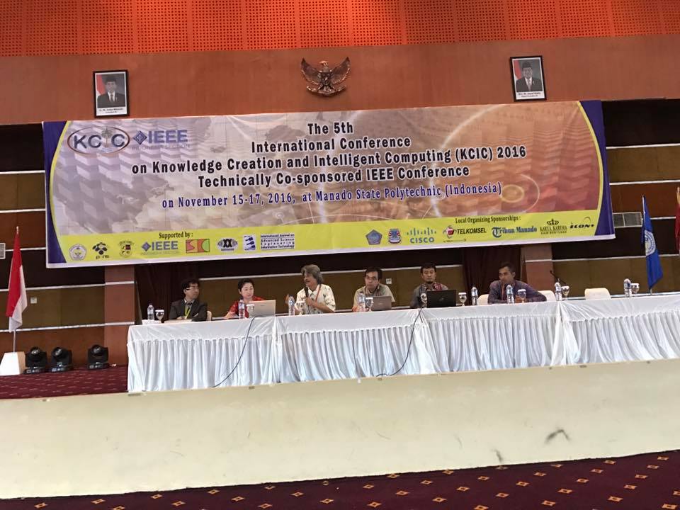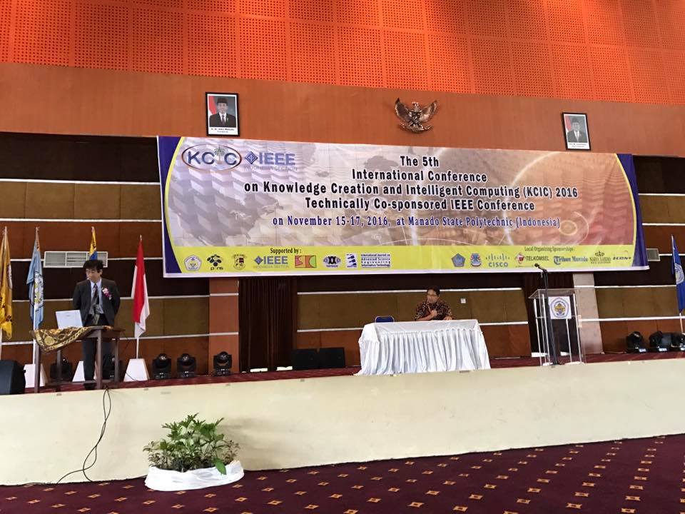 15-17 Nopember 2016Dosen dan Mahasiswa Program Pascasarjana terlibat aktif pada Kegiatan The Fifth International Conference on Knowledge Creation and Intelligent Computing (KCIC) 2016, Technically Co-sponsored IEEE conference, di Manado, 15-17 Nopember 2016, diadakan oleh Politeknik Negeri Manado (POLIMDO), Politeknik Elektronika Negeri Surabaya (PENS/EEPIS) dan Keio University. Kegiatan KCIC yang dimulai tahun 2012 ini tidak hanya sebagai research forum bagi peneliti muda di bidang Knowledge Creation and Intelligent Computing, tetapi juga sebagai collaborative space bagi perguruan tinggi untuk membuka jalan dan menjalin kerjasama institusional. KCIC 2016 didukung oleh beberapa Institutional Supporters dan Local Organizing Partnerships: